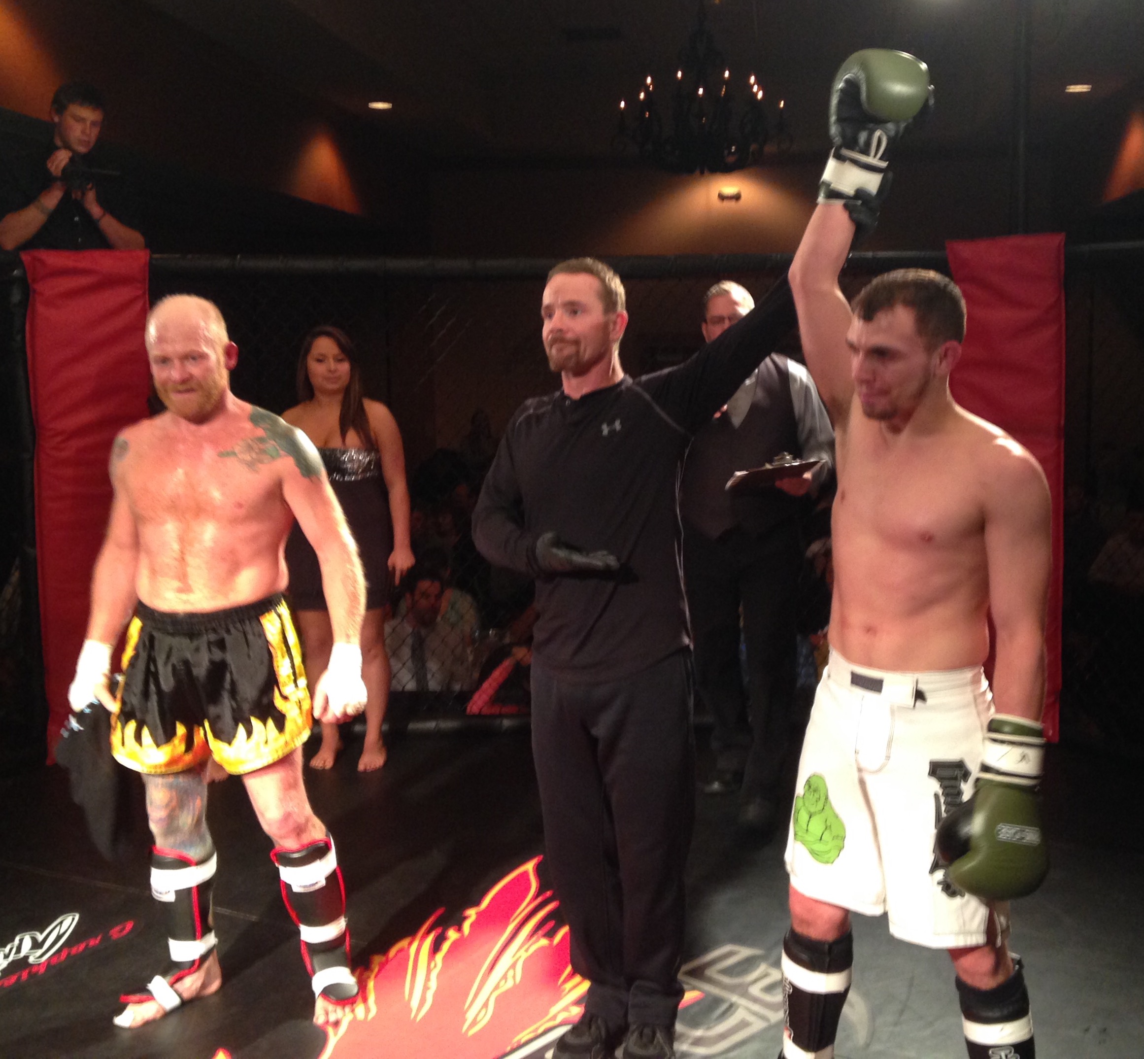 The last fight for SBG was a professional bout between Kalispell local Gus Nolte and Brandon Bailey. Nolte, a coach at SBG Montana, overwhelmed Bailey with a lead left hook that consistently landed and a series of hard leg kicks. Referee Dennis Bain saved Bailey mid-way through the first round declaring Nolte the winner by technical knock out (TKO).